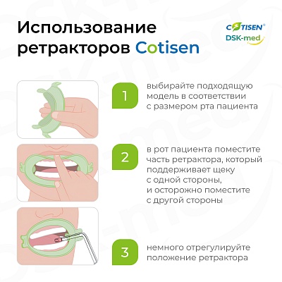 Confortabil – retragerea buzelor și obrajilor în timpul tratamentului îmbunătățește vizibilitatea și oferă un spațiu mai mare pentru manevrele medicului;