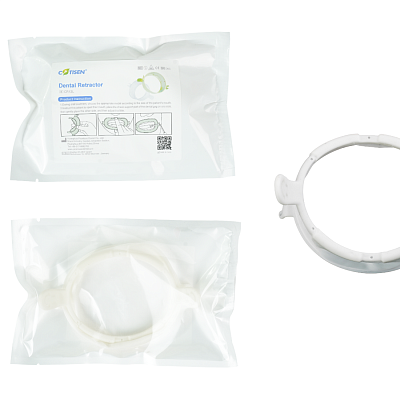 Retractorul dentar O-Shape este fabricat dintr-un material elastomer polimeric flexibil, prietenos cu pielea, având un corp din cauciuc moale cu elasticitate excelentă, care înfășoară și protejează buzele și alte țesuturi moi.