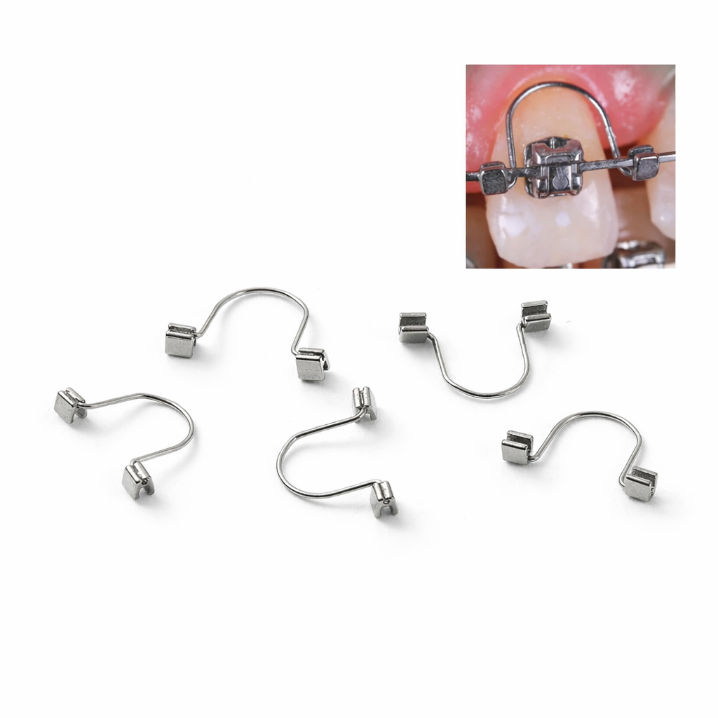 Bucla unică integrată în arc oferă o zonă activă suplimentară cu elasticitate crescută, reducând fricțiunea și facilitând mecanica de alunecare sau retracție fără pierderi majore de control asupra segmentelor dentare. Variantele din oțel inoxidabil medical oferă stabilitate dimensională și control excelent al forței, fiind potrivite pentru fazele de lucru și finisare.
