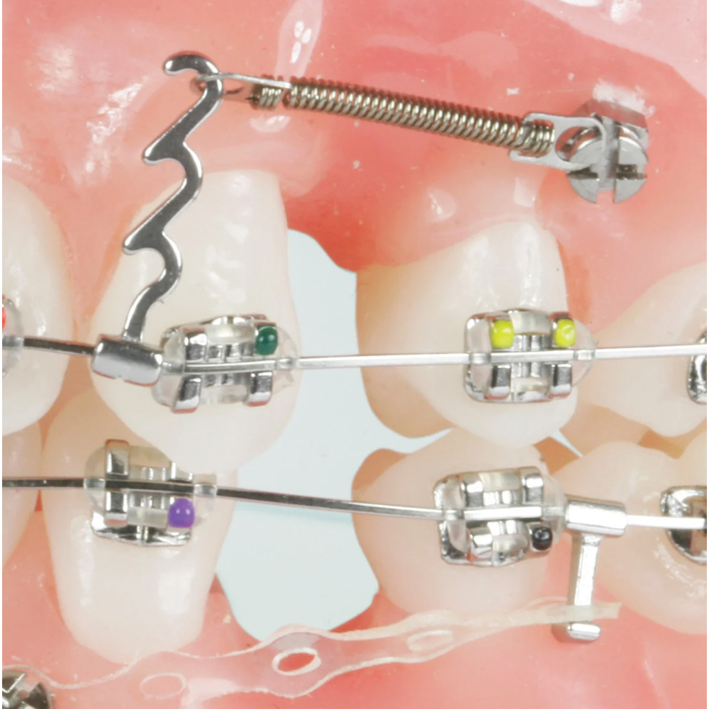 Pentru ortodonți, Spiral Crimpable Hooks Left/Right oferă flexibilitate clinică ridicată, stabilitate excelentă pe arc și posibilitatea personalizării rapide a punctului de aplicare a forței, optimizând mecanicile de închidere a spațiilor și controlul segmentelor dentare.